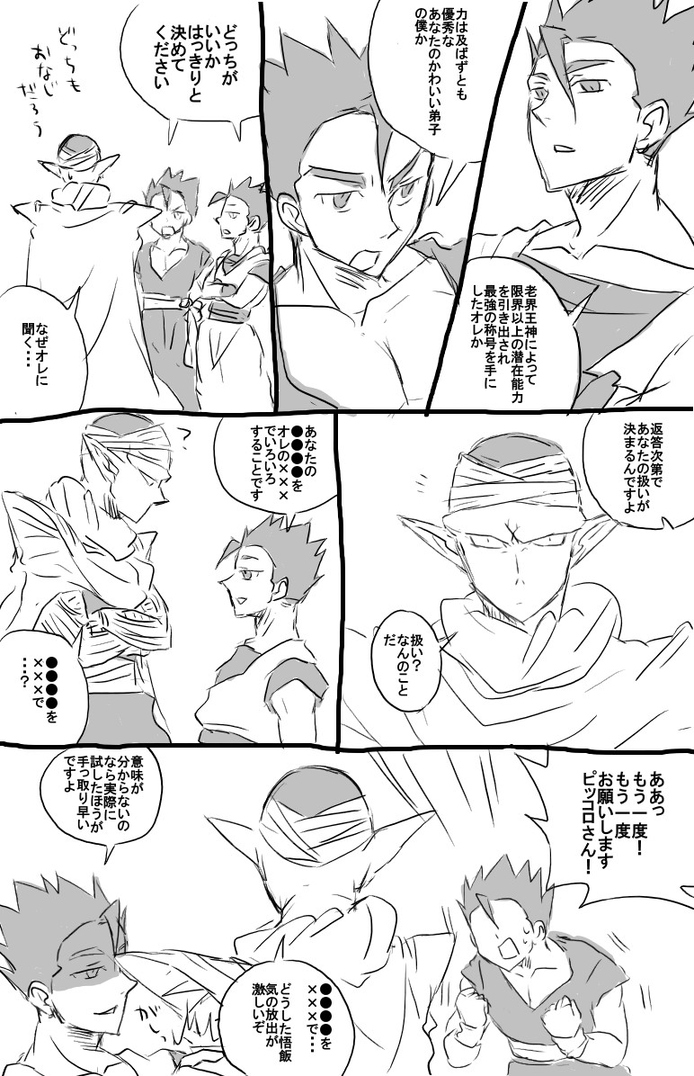 自分の思う青年悟飯とアルティメ悟飯のピッコロさんへの想いの表し方の違いというか、なんというか。こんな反応するんじゃないかと思いながらやってた。ピッコロさんは鈍感というか、それ以前に無知なので、なんで青年悟飯がハアハアしているのかがわかりません。アルティメはとことん攻め攻めで