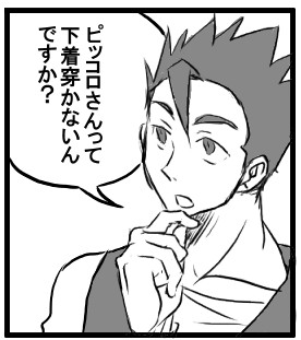 今ピッコロさんが女性用下着を穿くネタ描いてる。・・・の最初のコマ。黒と紫の小悪魔カラーにしたいです ヘヘ
