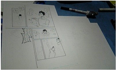 今日一日の成果。薄くて見えづらいけど3枚分だいたい下書き済み。