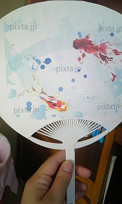 手元にあったミニうちわの紙部分をはぎ取って、印刷した紙貼っただけだけど。