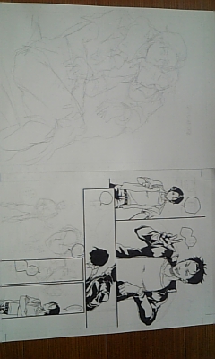 コマ割りをちょっとアメコミ意識しながらやってみてる。こう・・・・・・やっぱり日本のとはちょっと違うんだよね。